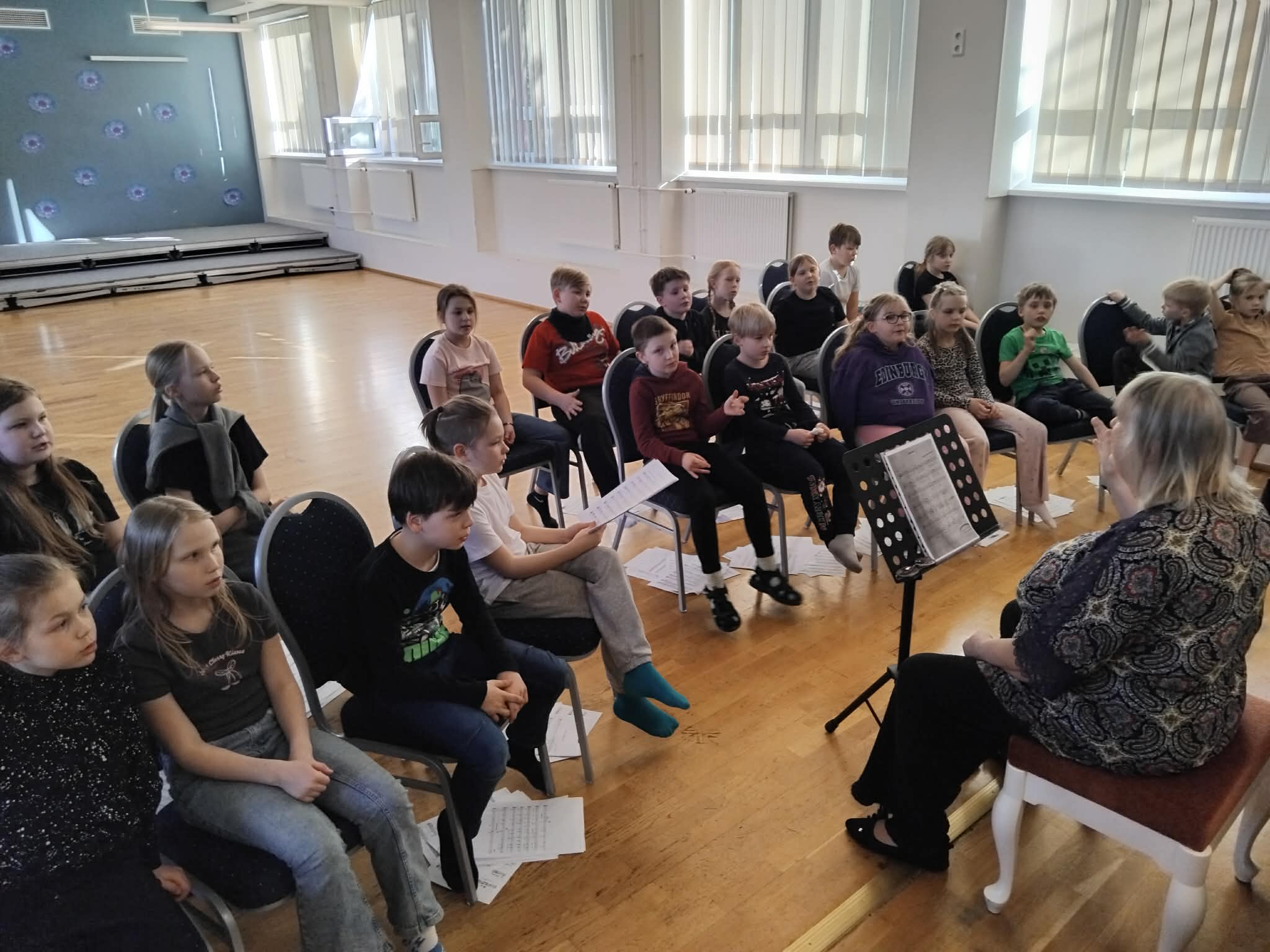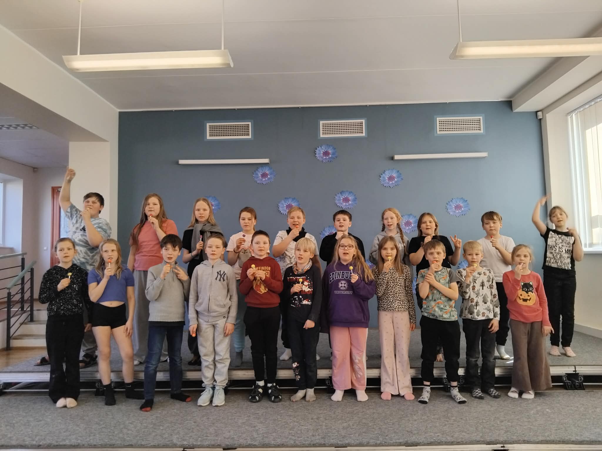 Lavale astuvad muusikakooli eelklassi ja 1. Klassi õpilased: Liisa, Antonina, Raili, Saskia, Kristella, Sofia, Nina, Lembitu, Keitlin, Emma-Marie, Simmo, Daniel, Liisa-Marii.