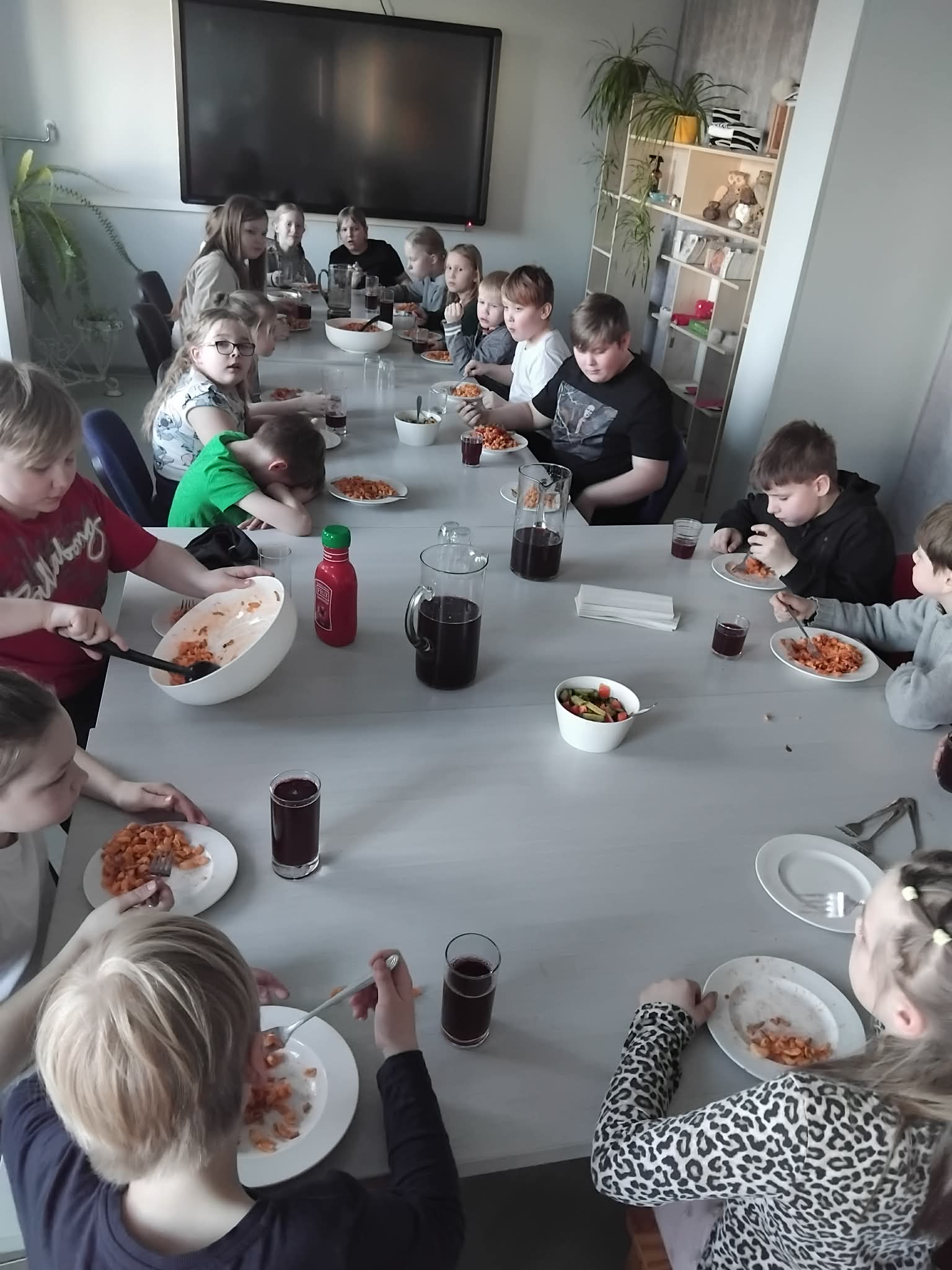 Hommikul putru, võileibu ja kakaod nautides leppisime kokku, et klassid jäävad meist korda. Poisid olid tublid harja kasutajad ja tüdrukud vedasid lõpuks isegi lauad-toolid muusikaklassi tagasi. Oleme õp Triinuga väga tänulikud selle laheda seltskonna eest. Suur töö sai ära tehtud, nüüd on vaja veel lõplik viimistlus ning siis - ESINEMA! Kahjuks on kevadine ilm salakaval ja täna on nii mõnigi köhane-nohune ja kurguvalus laps kodus tervist turgutamas. Ka õpetajad on pisut tõbised ja valutavad kurku. Aga pole hullu. See läheb mööda! Aga rõõm muusikast jääb!